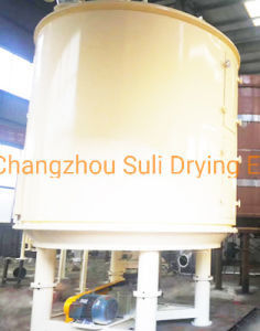 O material úmido é alimentado continuamente na primeira camada de secagem no topo do secador.Ele será virado e agitado por raspadores quando o braço raspador gira e cair para baixo para a borda externa da grande placa de secagem ao longo da linha helicoidal exponencialO material será deslocado da pequena placa de secagem para a sua borda exterior e cairá para a borda exterior da grande placa de secagem por baixo.Tanto as pequenas e grandes placas de secagem são dispostos alternadamente para que os materiais podem passar através do secador continuamenteO meio de aquecimento pode ser vapor saturado, água quente ou óleo térmico.Os materiais secos cairão da última camada da placa de secagem para o fundo do secador e, em seguida, movido por rastros para a saída de descargaPara o secador de placas de tipo vácuo, a humidade será aspirada pela bomba de vácuo na tampa superior.Os materiais secos serão descarregados da camada inferiorA capacidade de secagem pode ser melhorada se o secador estiver equipado com dispositivos suplementares, tais como aquecedor de barbatanas, condensador para extração de solvente, depurador de sacos, mecanismo de retorno e mistura, ventilador de arco,etc..